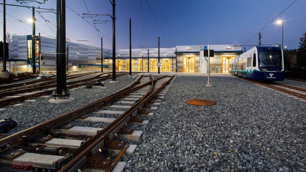 The new OMF East will enable extensions to Lynnwood, Federal Way, and Redmond, Washington. The facility was delivered by the design-build team of Stantec, Hensel Phelps Construction Co., and partners. Construction started in 2018.