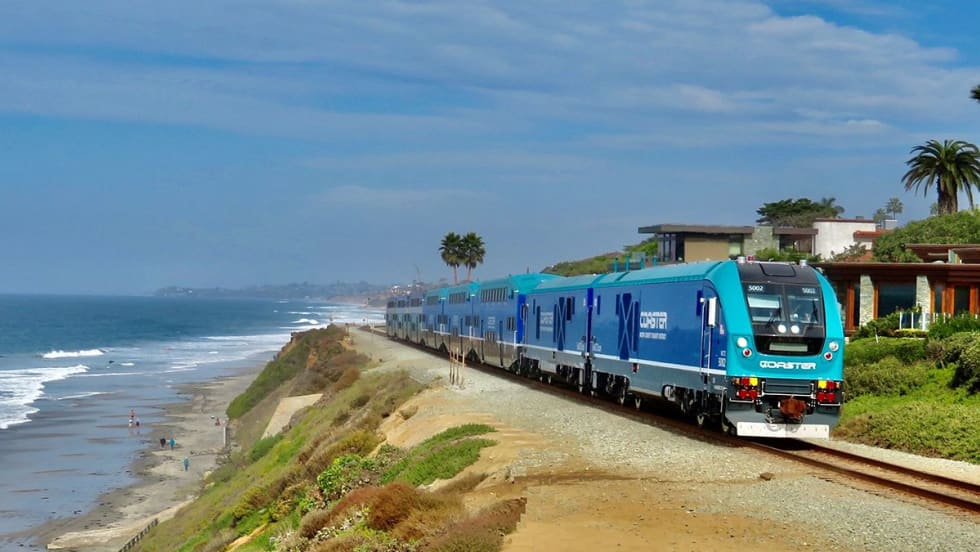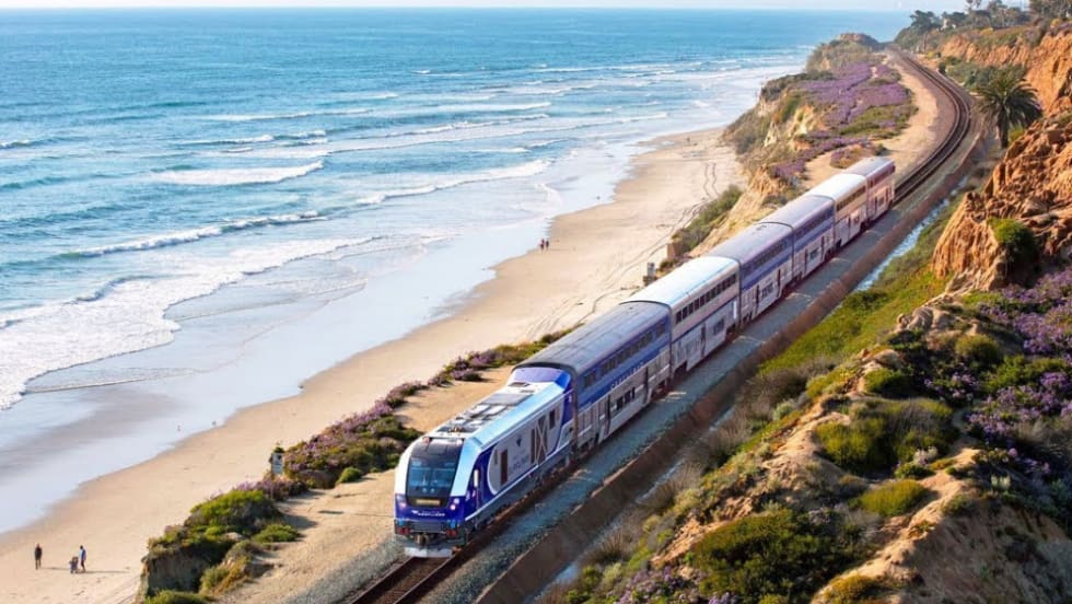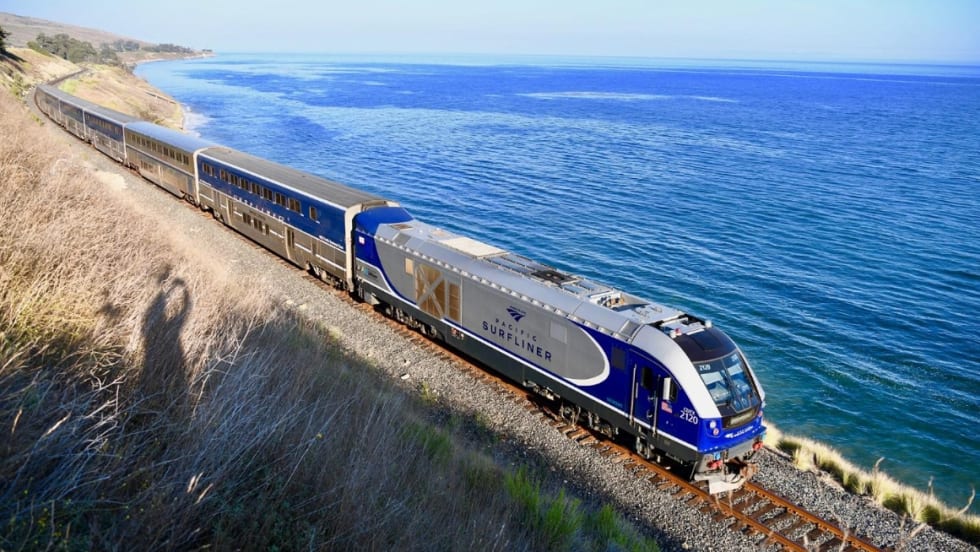 The Pacific Surfliner travels along a 351-mile coastal rail route through San Diego, Orange, Los Angeles, Ventura, Santa Barbara, and San Luis Obispo counties, serving 27 stations.