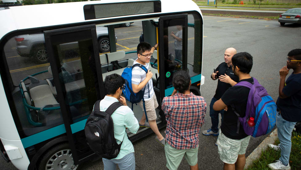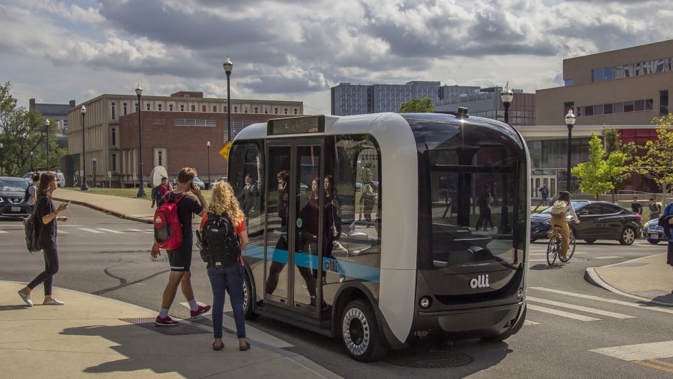 Sacramento State competed in and won an Olli fleet challenge for presenting a best-use scenario for the eight-person vehicle.