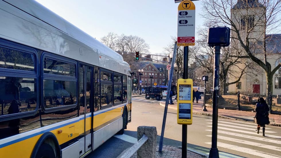 The solar-powered electronic ink (E Ink) signs, located at 18 bus stops in several Boston neighborhoods, provides stop-specific info.