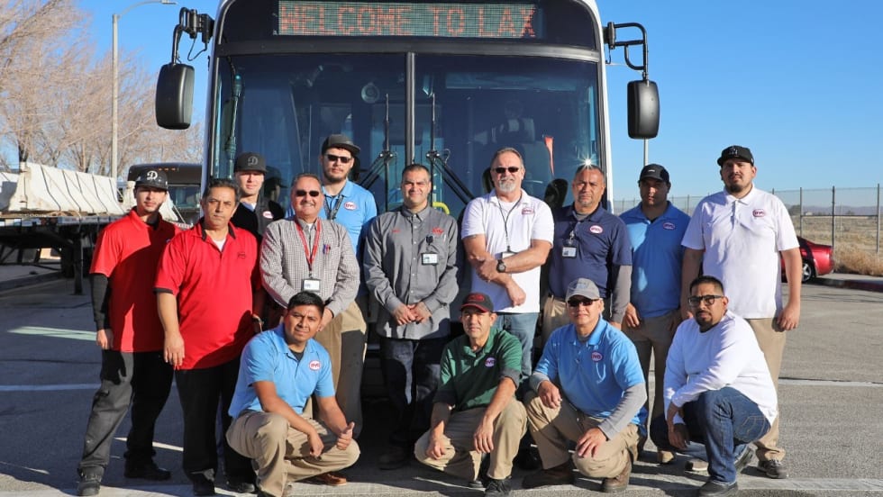 The vehicle is a 60-foot articulated built for Los Angeles World Airports.