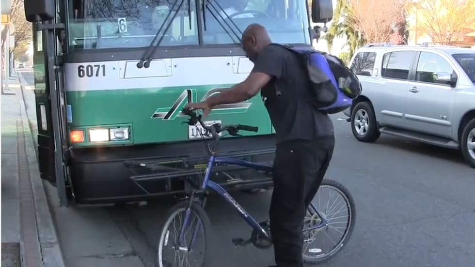 Ronnie Thomas commutes 80 miles from Stockton by bike, bus and train to his job at Stanford University as a dining employee.