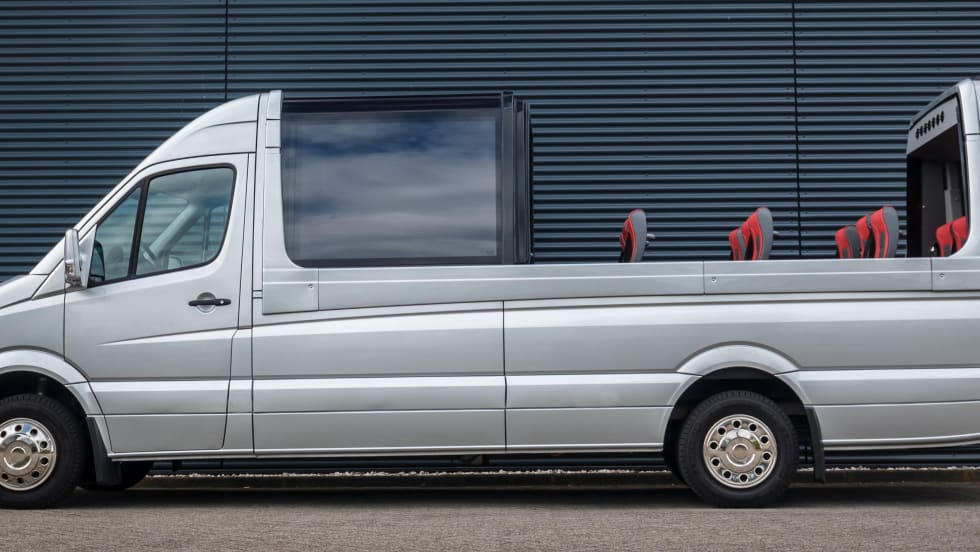 The patented and proprietary SkyVue glass top convertible bus will be available in the U.S., Canada, Mexico and the Caribbean on the 170 inch-extended wheelbase 3500 model Sprinter in several 16 to 20 passenger configurations.