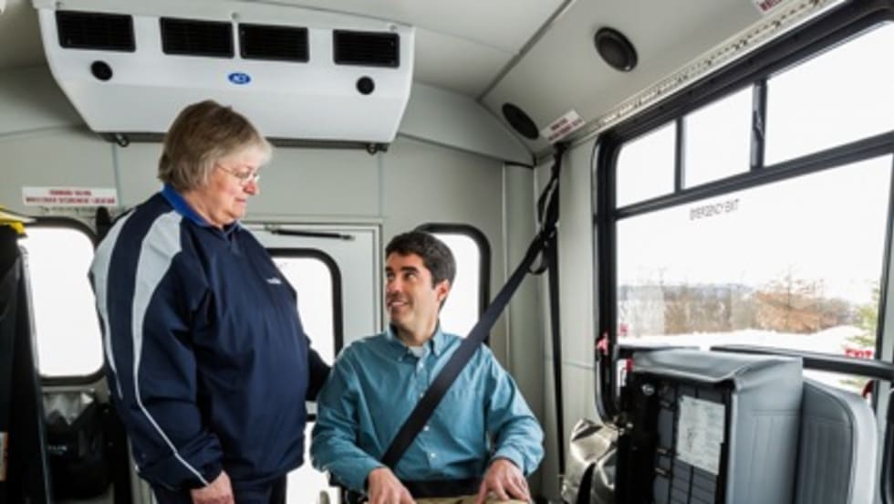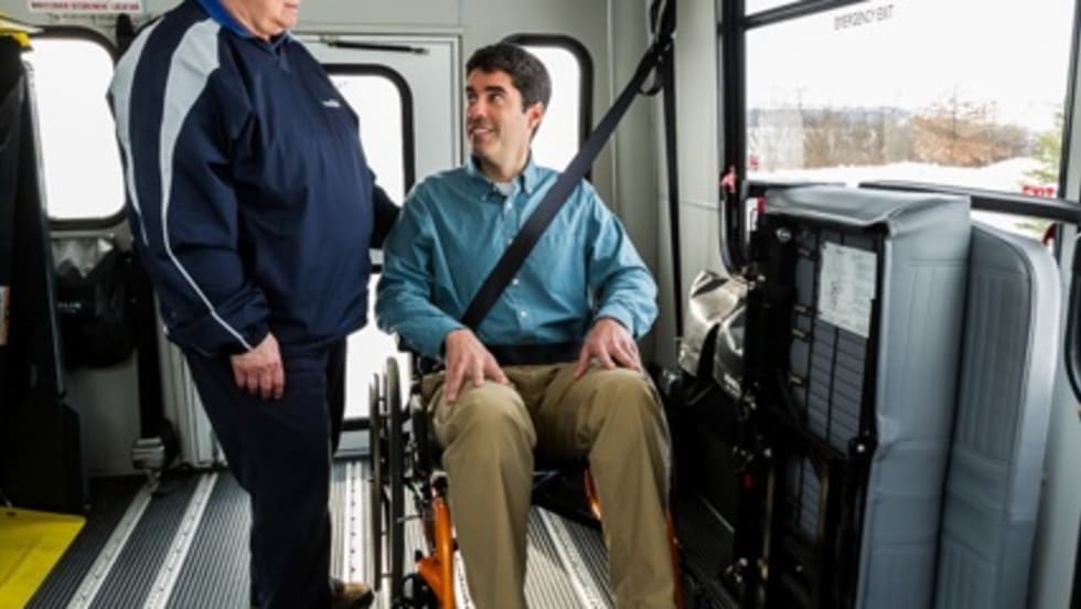 Dan Allison works with mobility passengers to train them on how to safely and properly operate or ride in a vehicle with their device