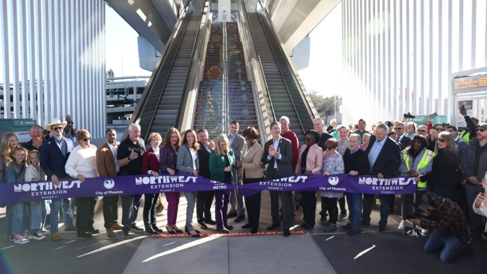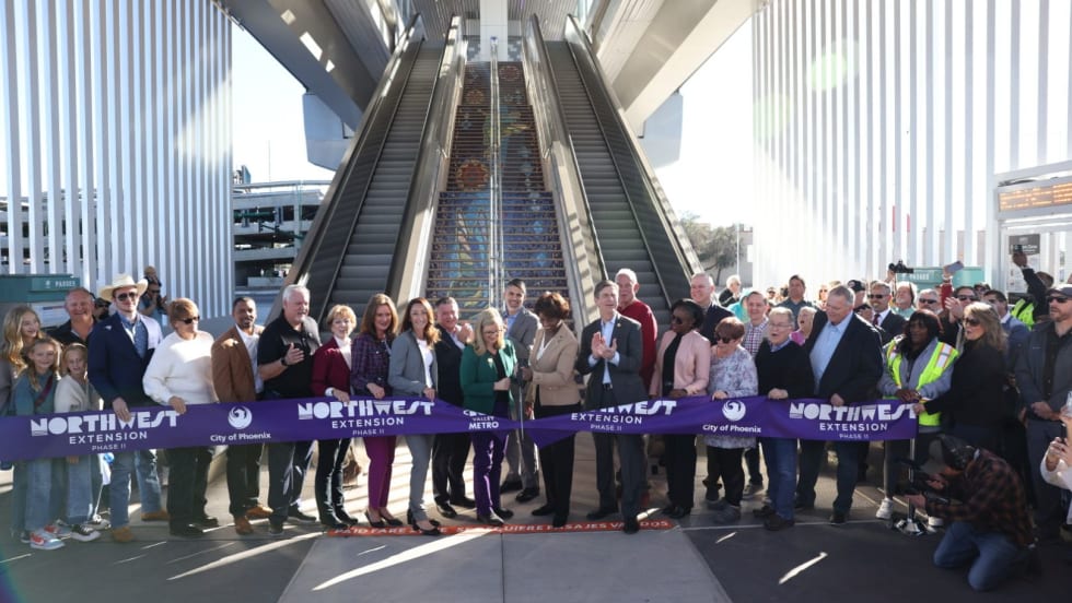 The extension introduces unique features, including the first elevated rail station, a rail-only bridge over the I-17 freeway, and seven community-driven public art installations.