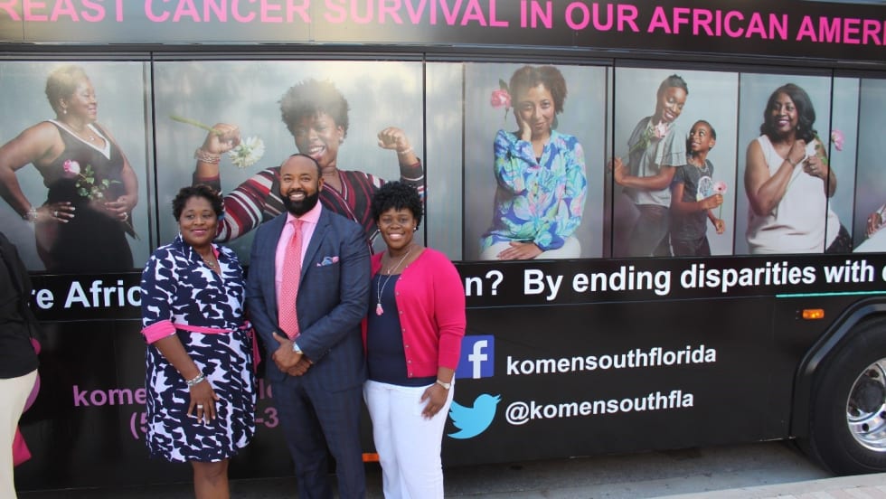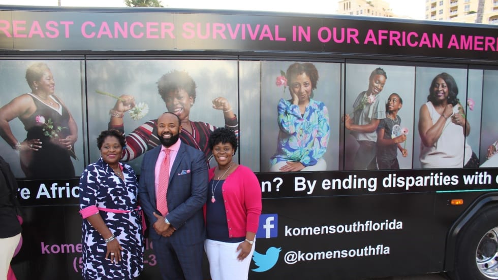 The bus was designed in partnership with Susan G. Komen South Florida and a local advertising firm to highlight racial disparities in breast cancer treatment.