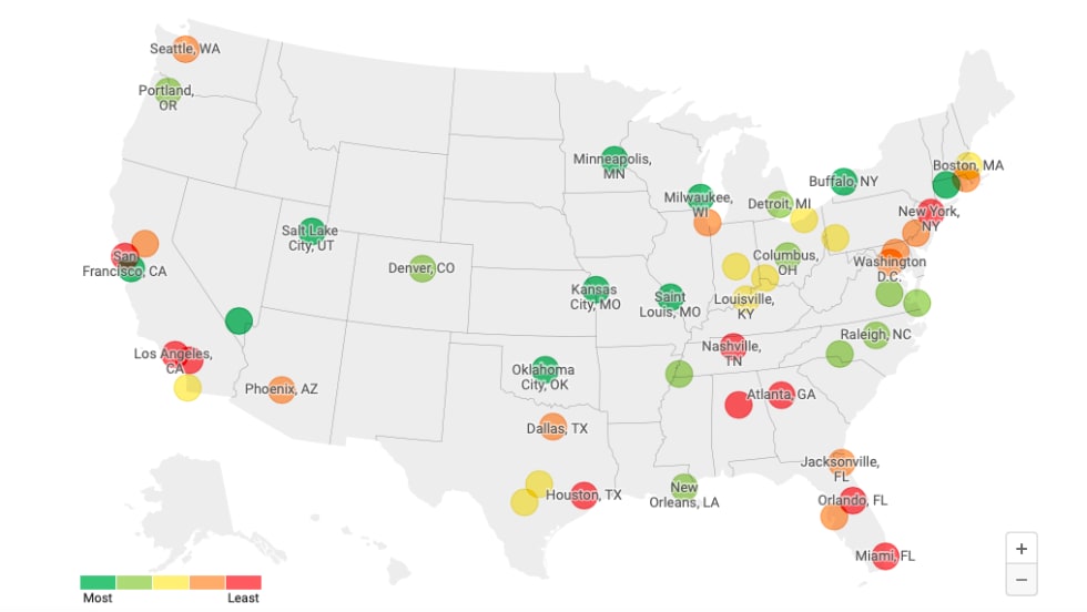 The analysis includes the top 50 largest U.S. metro areas by population.