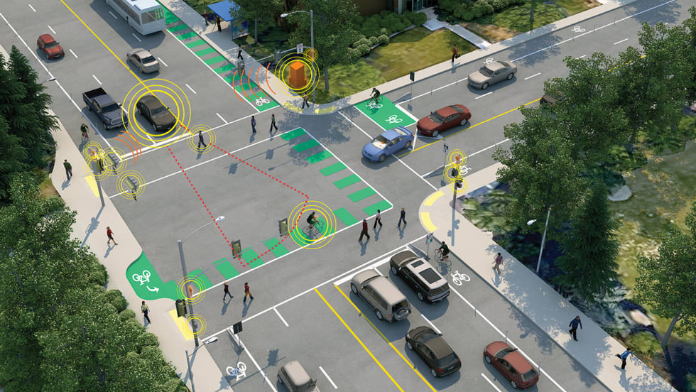 Reduces traffic signal delays, and uses AI to anticipate users’ arrivals at signalized intersections and then request priority.
