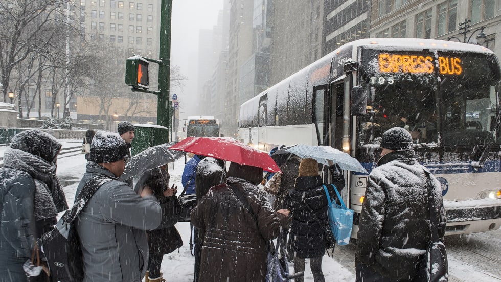 Some New York City subway lines were running with delays because of signal and switch troubles. The MTA said bus service was running with delays across all five boroughs and some had to be detoured because of icy roads.