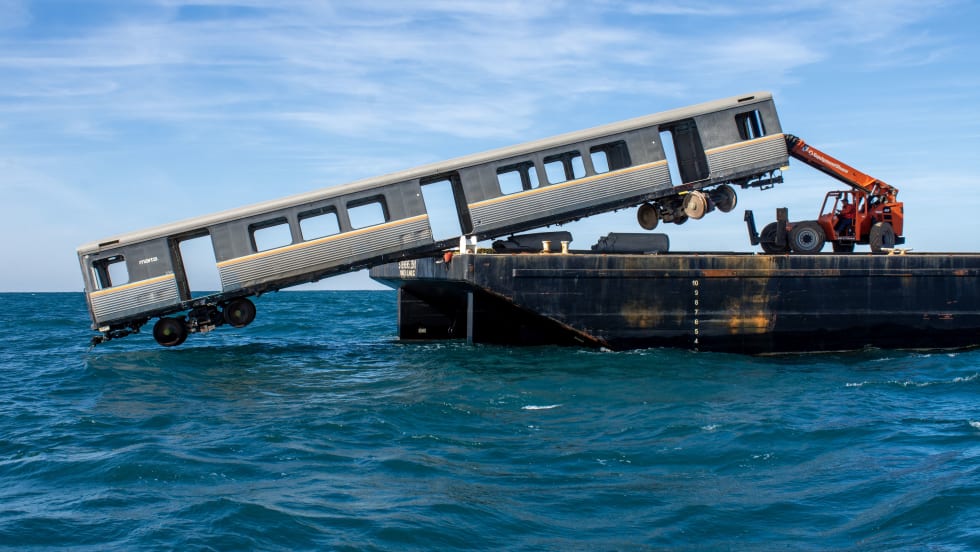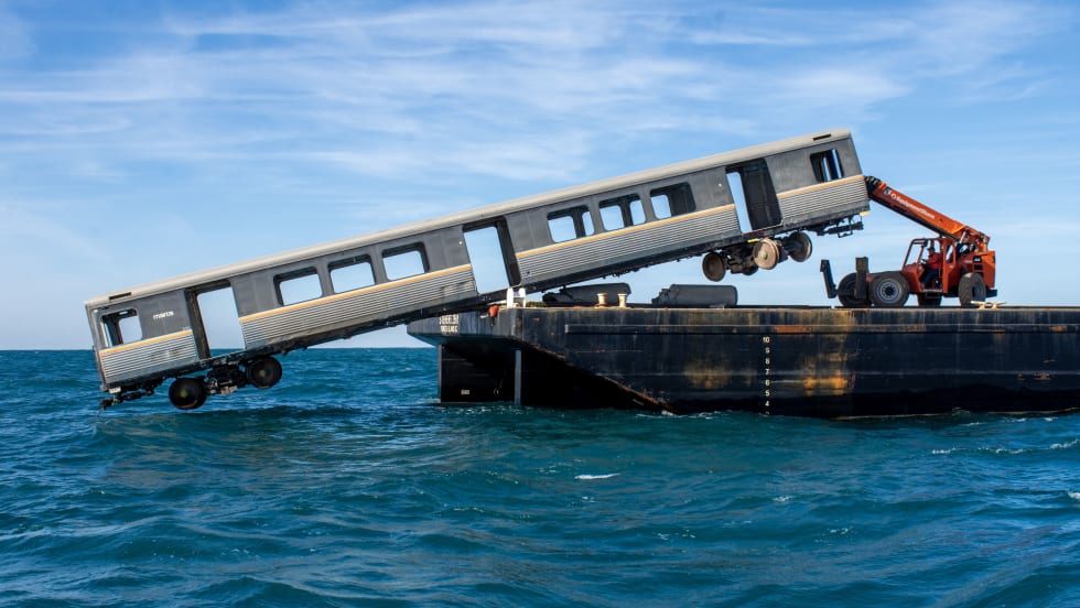 Earlier this year, the dismantled older-model railcars were stripped of hazardous materials and contaminants and inspected and approved by the U.S. Coast Guard for deployment as artificial reef material.