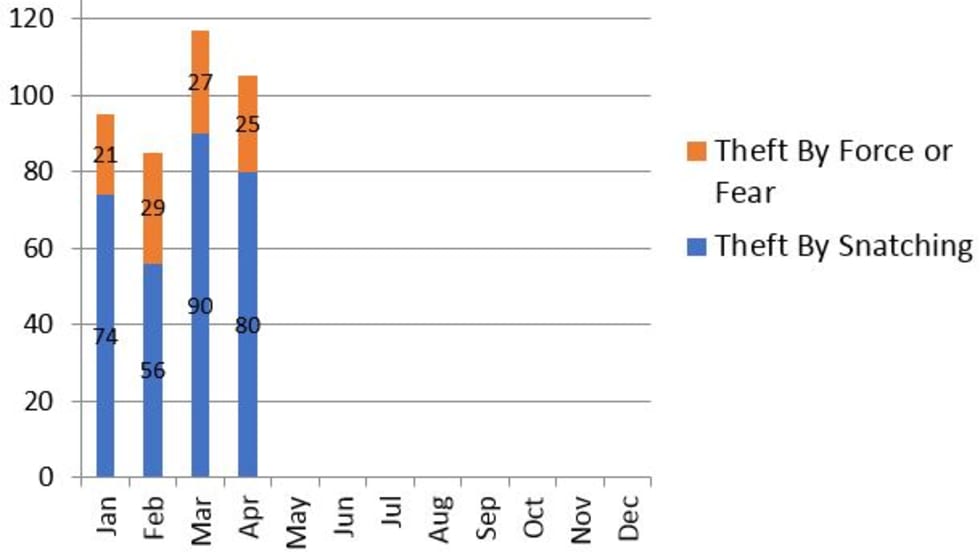 BART had 402 electronic item thefts reported in the system from January 1st through last month.