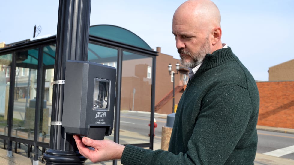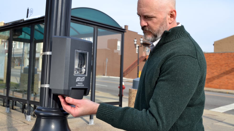 The dispenser enables commercial and municipal buyers to offer hand sanitizer and hand soap in outdoor or high-traffic areas.