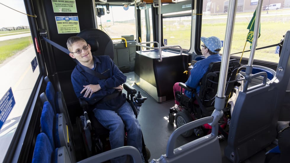The system is designed to allow people using manual or power wheelchairs to independently secure themselves on a bus with just the push of a button.