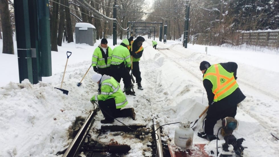 The transit system shut down completely on Sunday for the storm that dumped 16.2 inches of snow in the city, and rail and bus lines were operating on a limited schedule Monday.