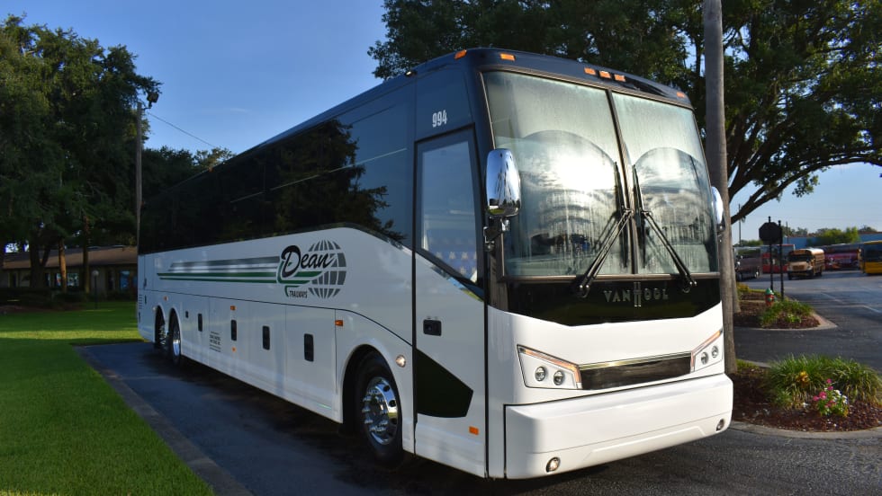 The coaches are equipped with Cummins engines, Wi-Fi, satellite TV, and outlets with USB ports.