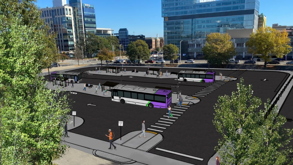 The new Downtown Transfer Station is being built on a parking lot at 8th and Clay streets.