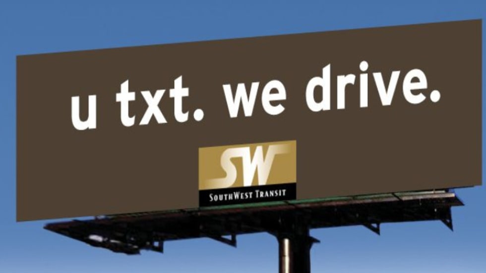 SouthWest Transit will introduce other ads and promotional materials such as T-shirts, bumper stickers and postcards later in August as the entire marketing campaign is finalized and rolled out.