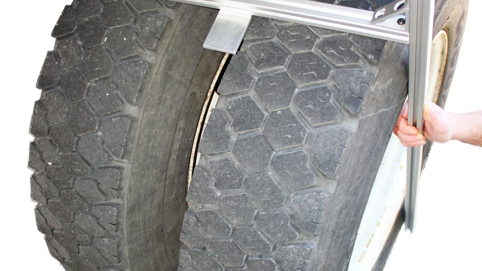 The Tire Comparator (Type II) is a consistent caliper for comparing tire diameter on dual-mated tires.