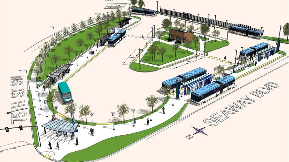 The Seaway Transit Center will serve Paine Field area buses, including the new Swift Green Line.
