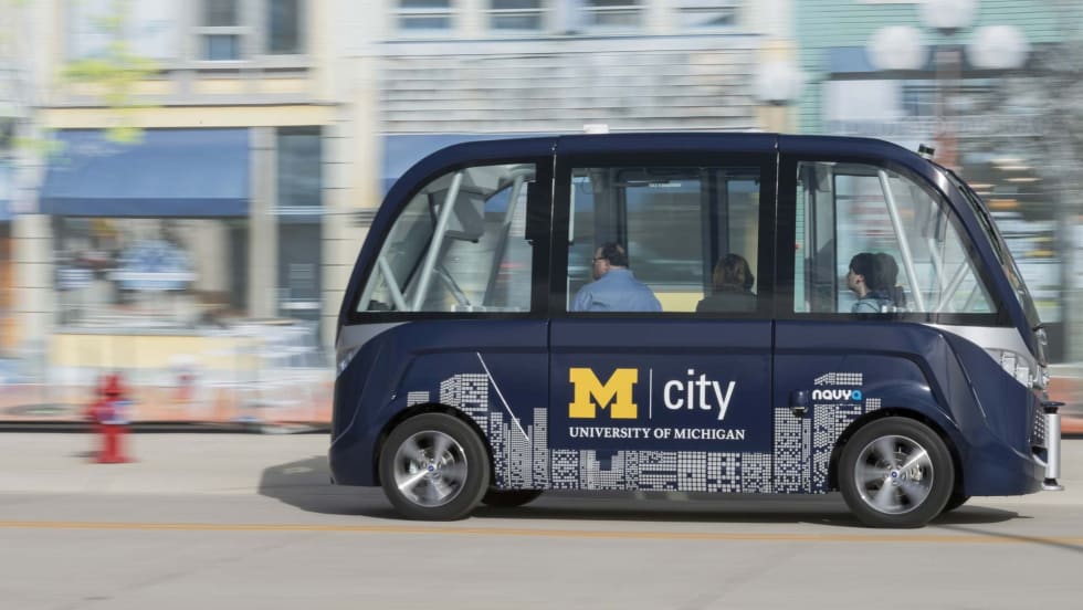 A fully autonomous, 15-passenger electric shuttle manufactured by French firm NAVYA will support research and provide self-guided tours of Mcity, the university's test site for connected and automated vehicles.