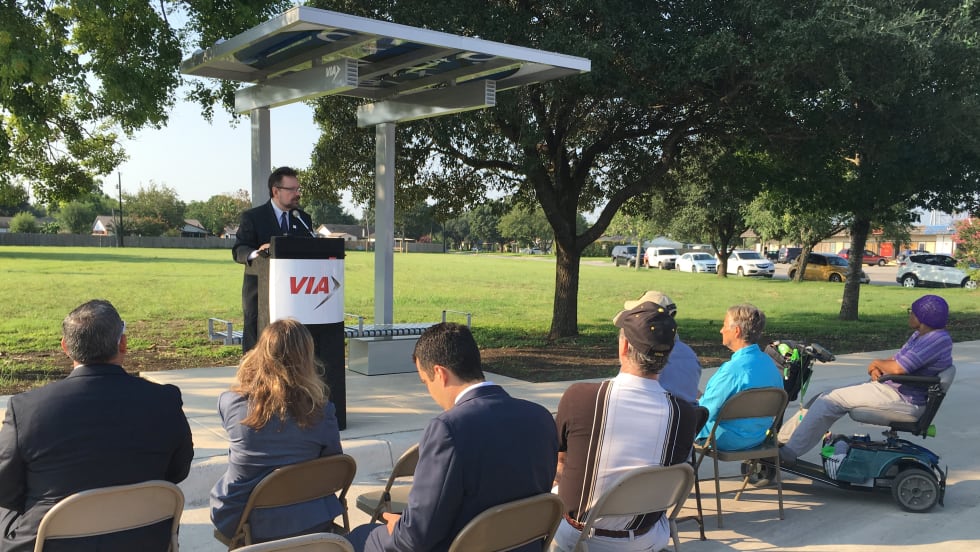 The City of Kirby will be among the first in VIA’s 14 member cities to feature solar-powered lights installed in nine new VIA bus shelters.
