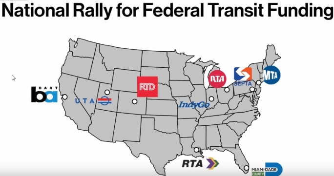 Transit agency leaders from the New York Metropolitan Transportation Authority, Denver Regional Transportation District, IndyGo, Greater Cleveland Regional Transit Authority, San Francisco Bay Area Rapid Transit, Utah Transit Authority, Miami-Dade County Department of Transportation and Public Works, and Southeastern Pennsylvania Transportation Authority hosted a rally that called on Congress to urgently deliver significant and immediate federal aid to public transportation systems nationwide.